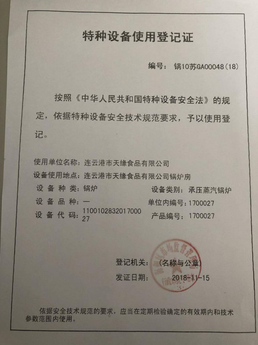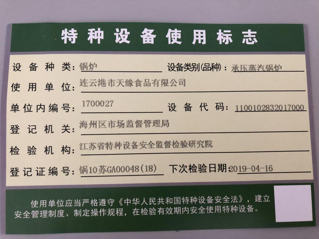 按照政府環(huán)保部門相關要求,為減少污染,消除燃煤鍋爐在運行過程中存在的安全隱患,天緣食品上半年積極聯(lián)系燃氣公司,拆除燃煤鍋爐,更換符合國家要求的燃氣鍋爐,同時安裝太陽能,以確保公司生產正常運營。下半年,根據(jù)要求,工作人員又主動到市場監(jiān)督管理局將原鍋爐使用登記證注銷,并成功辦理新鍋爐的使用登記證。