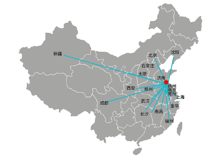 華東地區(qū)主要城市:濟南、上海、金華、合肥、福州、南昌、南京、揚州、常州
